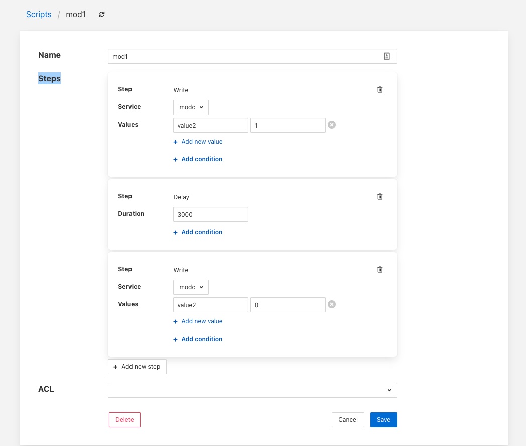 You can enter a name for your access control list in the Name item on the screen. You should give each of your ACLs a unique name, this may be anything you like, but should ideally be descriptive or memorable as this is the name you will use when associating the ACL with services and scripts.