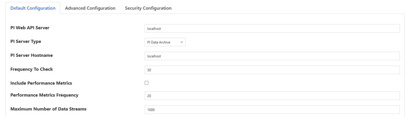 Maximum Number of Data Streams: The Query Parameters configuration may result in the selection of an overly large number of PI Data Archive tags or Asset Framework Attributes. The Maximum Number of Data Streams configuration is a limit to the number of data streams loaded. If this number of data streams is reached, the PI Server South plugin will stop loading further data streams and log a warning that the number has been limited. This parameter can serve as a check during development of your Query Parameters. The default is 1000 data streams. If this parameter is set to zero, there is no limit to the number of data streams loaded.